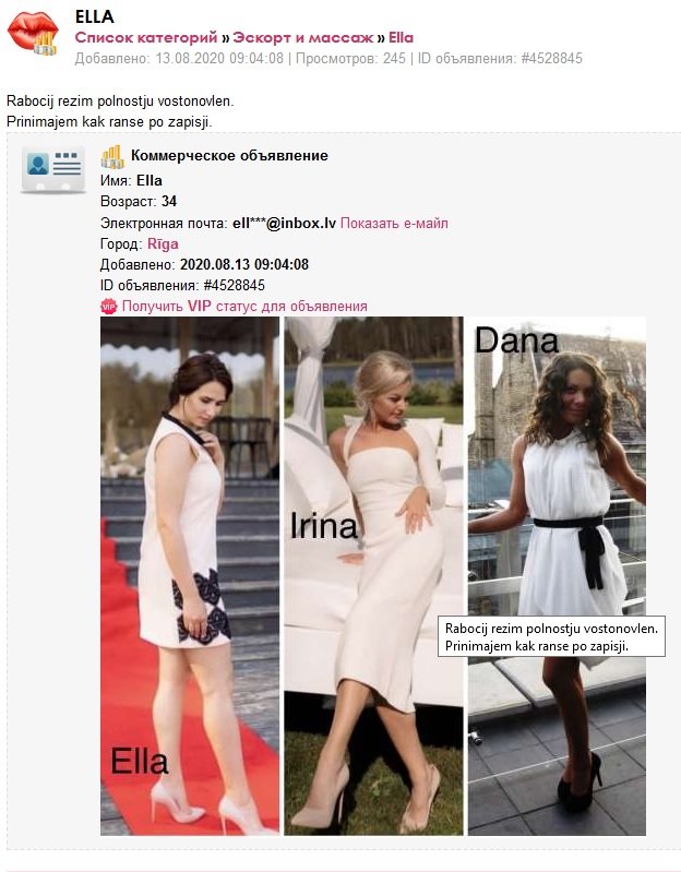 Took her for an hour, for 160 euros. Went to Brivibas 90. Met me in red lingerie, as in the photo, and in heels. The photo is completely the same, there is a minimum of photoshop. She sent me to the shower, gave me 3 towels. I paid extra for a blowjob with cum in mouth 50 euros. After the shower, she offered to choose the location, and the apartment is large, there is a bed, a sofa, and even on the kitchen table, I think she would have agreed. She refused me in the blowjob, but I am not offended, she returned the money.