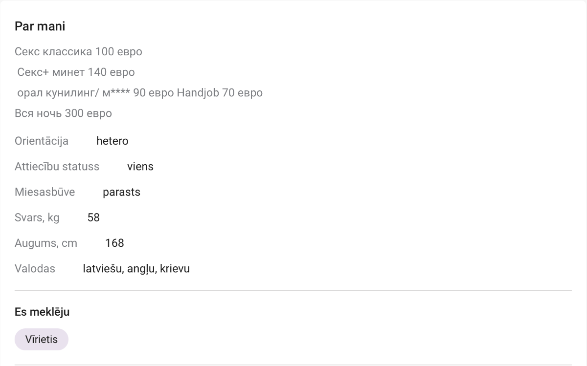 Kāda tautai ir pieredze ar beibēm no seksam.lv un arī citiem iepazīšanās portāliem? Cik ir manīts, tad ne visas, kuras atdodas par maksu, to reklamē savā profilā...